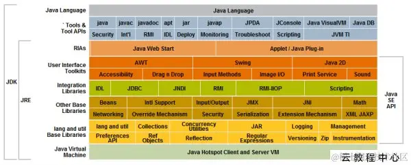 - JavaSE:也称为标准版,支持面向桌面级应用的Java平台,提供了完整的Java核心API,所有从事Java开发的都是先从JavaSE开始学起。