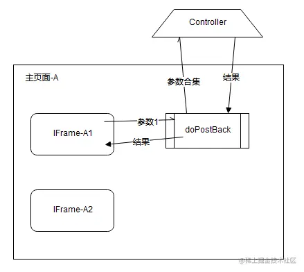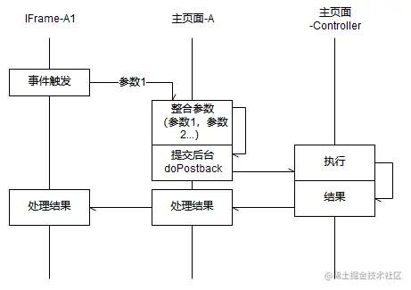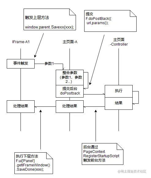 其中有一个方法,由子页面发起,由父页面提交到后台处理(因为参数来自于不同页面),再返回结果由父页面和子页面分别处理;