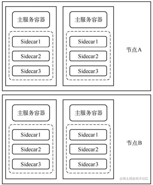伴生模式的弊端是伴生容器数量随主容器数量的增加而增加。如图1所示,一般一个节点上会有数十数百个主容器,这样一来,假设一个节点可承载容器的数量是n,若一个主容器有k个伴生容器,则这个节点可承载主容器的数量就降低到n/(k+1)个。这就影响了节点上的容器承载量。