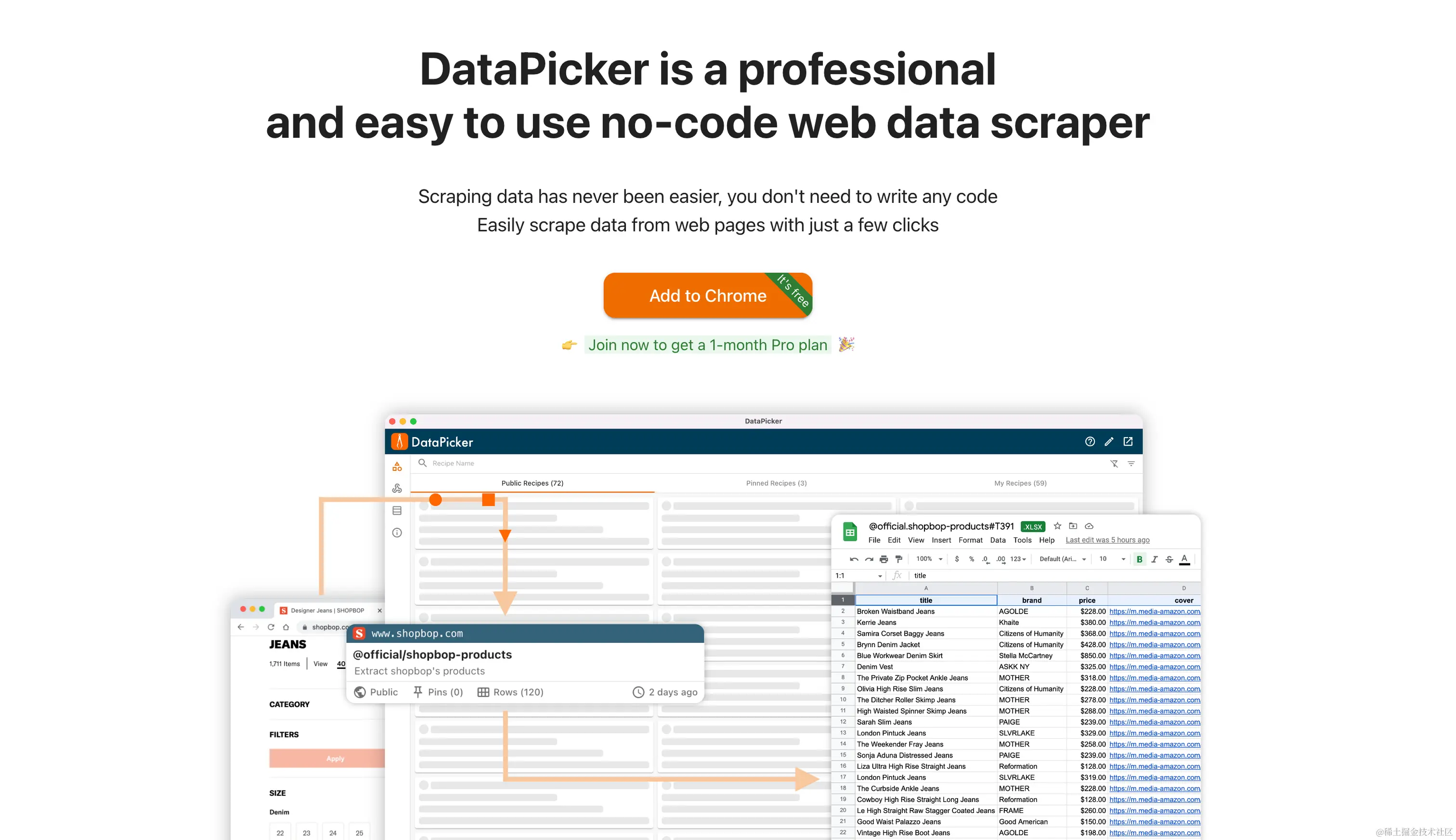 - DataPicker - 这是一个专业的网络数据采集器,它可以从任何网页上提取或采集数据,然后导出数据为 Excel 或 JSON 文件。 它非常的简单易用,对技术小白很友好,因为你不用写任何代码,只需几个点击即可采集数据。作者@byetool 。产品做的很完整。