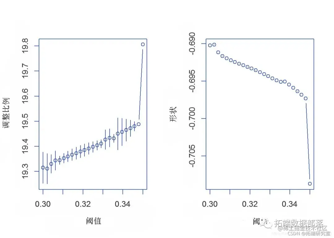 R语言极值推断:广义帕累托分布GPD使用极大似然估计、轮廓似然估计、Delta法