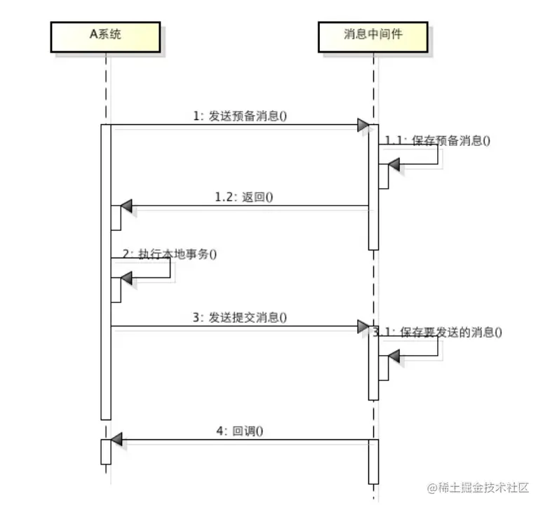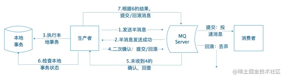- 发送方收到消息回查后,需要检查对应消息的本地事务执行的最终结果。