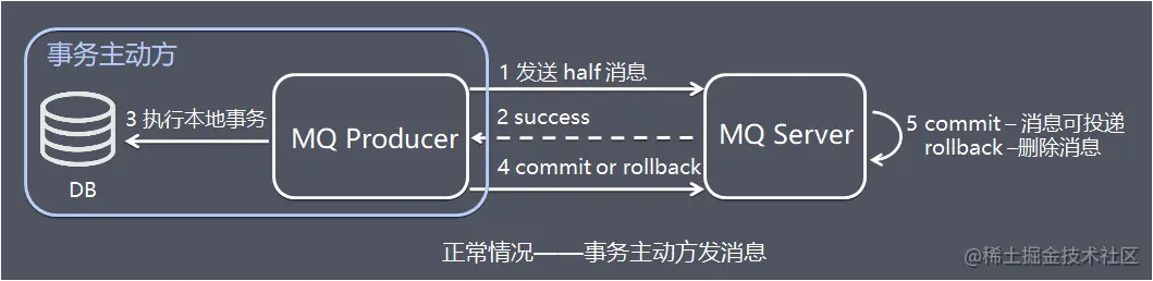 事务主动方服务正常,没有发生故障,发消息流程如下: