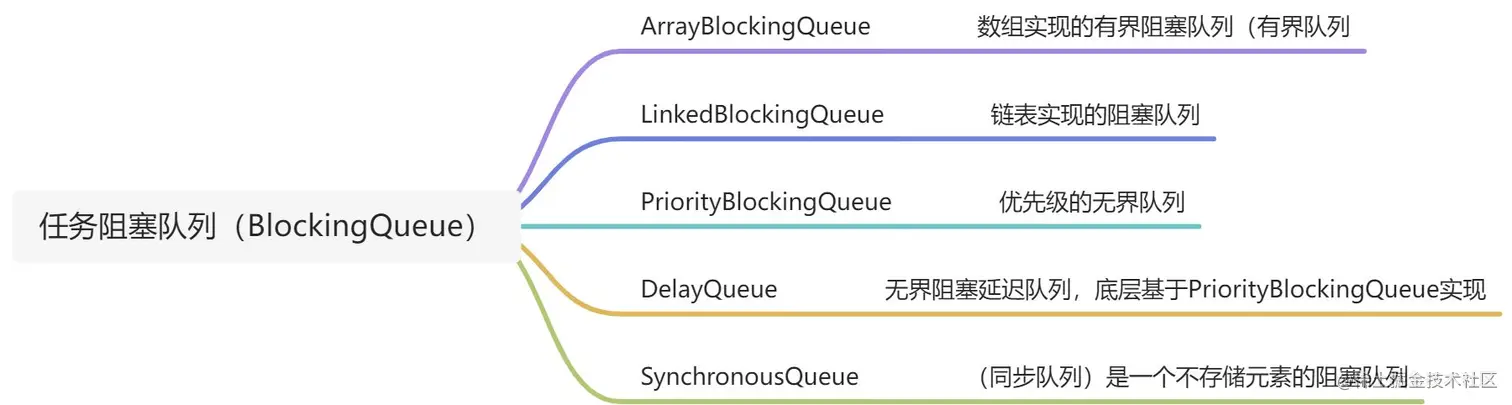 在线程池的任务缓存队列为有界队列(有容量限制的队列)的时候,如果队列满了,提交任务到线程池的时候就会被拒绝。总体来说,任务被拒绝有两种情况:(1)线程池已经被关闭。(2)工作队列已满且maximumPoolSize已满。 ·AbortPolicy:拒绝策略。·DiscardPolicy:抛弃策略。·DiscardOldestPolicy:抛弃最老任务策略。·CallerRunsPolicy:调用者执行策略。·自定义策略。
