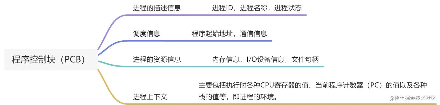 - 程序控制块(Program Control Block,PCB)包含进程的描述信息和控制信息,是进程存在的唯一标志。(基本信息)