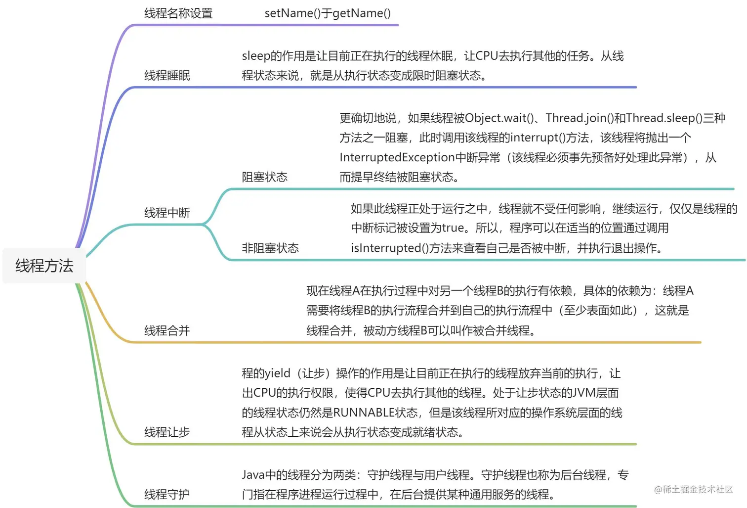 public Thread.State getState();//返回表示当前线程的执行状态,为新建、就绪、运行、阻塞、结束等状态中的一种。
