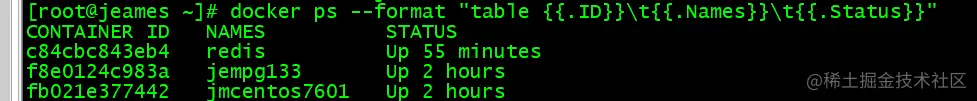 docker ps --format "table {{.ID}}\t{{.Names}}\t{{.Status}}"