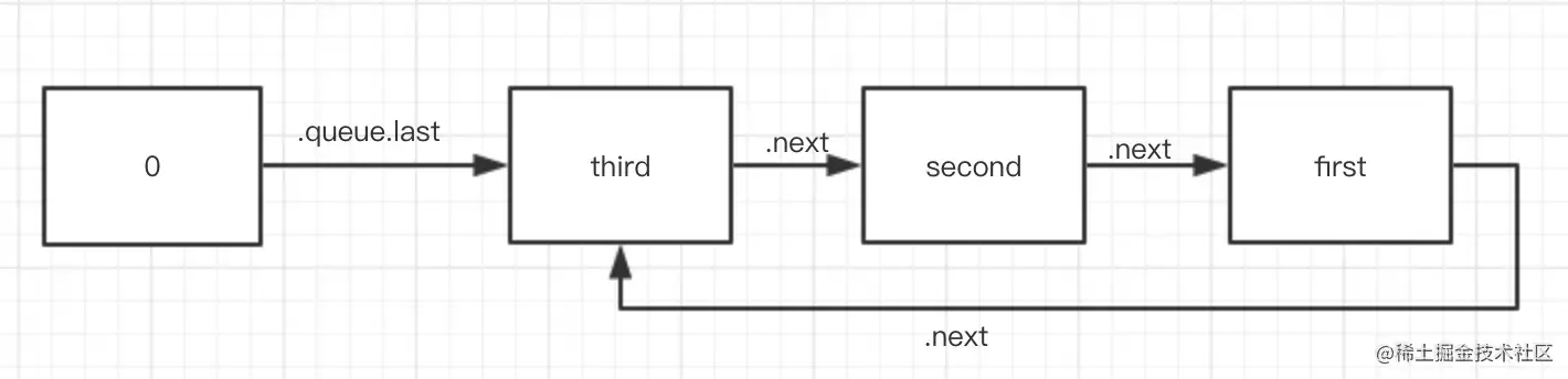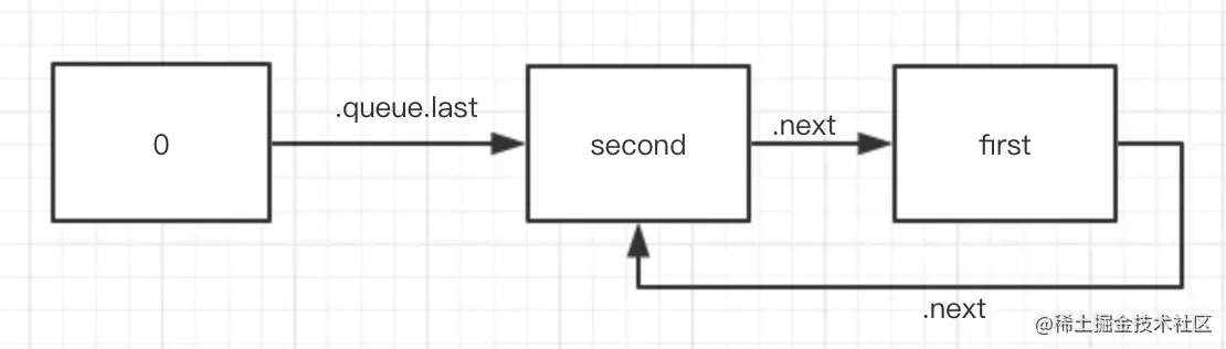 // 第一次更新时,队列是一个自圆queue.last.next = queue.first。当第一次update提交后,baseUpdate不再为空即可跳出队列