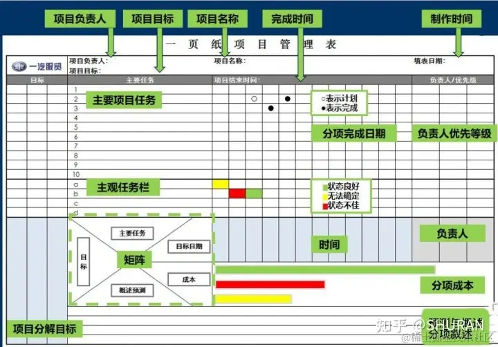 但是,我们都知道,项目有时候会很复杂,把它简单的呈现给老板是个很难的事情,所以,这个时候就要用到“一页纸项目管理”这个工具了。