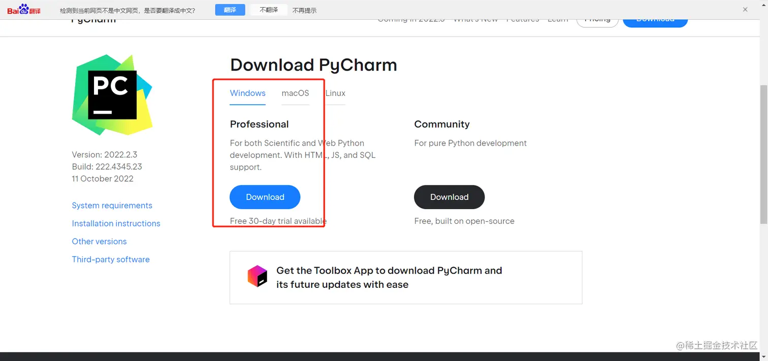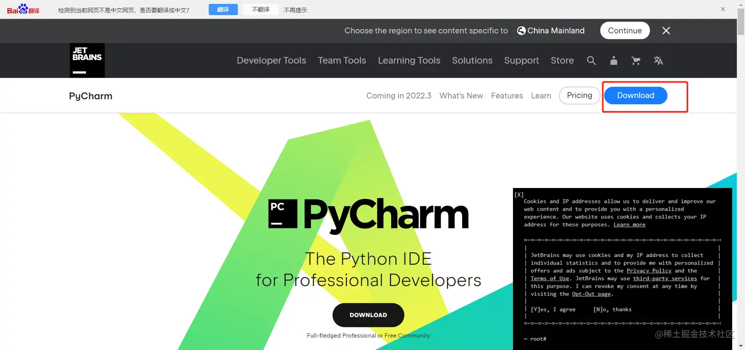 2.安装pycharm 官网:www.jetbrains.com/pycharm/