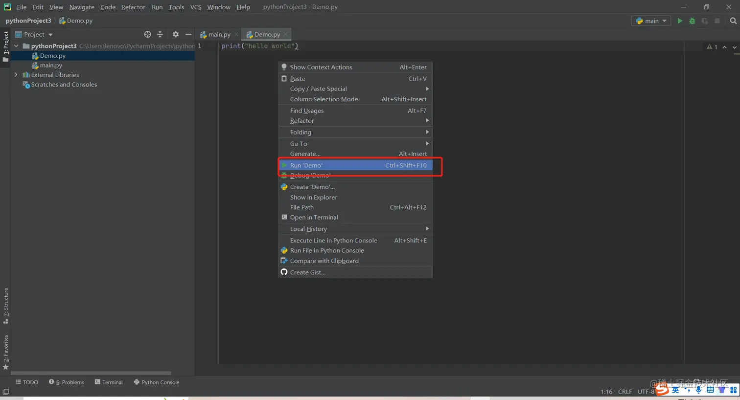 然后右键选择run,或者快捷键ctrl+shift+F10