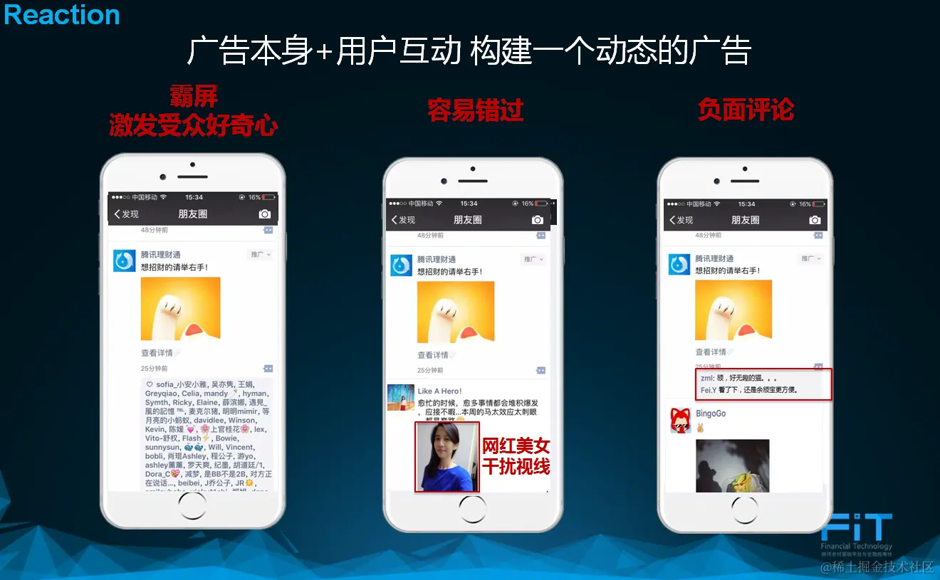 朋友圈广告不但可以让用户主动访问,而且还可以看到其他用户的评论,这是朋友圈广告与众不同之处但却增加了广告创意的难度。并且,如果大家有H5阅读经验的话,很容易感知到,如果一个H5的体验不好,大量的用户都会在阅读过程中流失,最终影响广告效果,因此注重用户的使用体验很重要。
