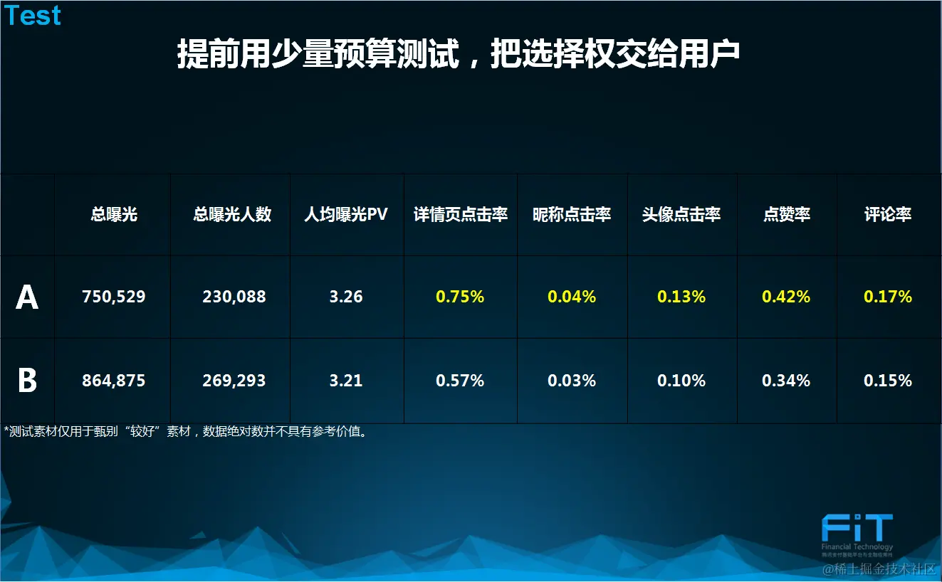 这个时候,我们把选择权交给用户。各拨5万预算,投放前一天进行朋友圈广告测试。结果证明,A素材各方面全部优于B素材。