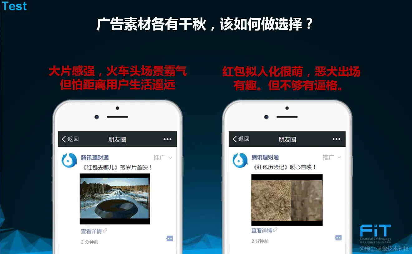 作为一个MKTer,在很多时候都会面临难以抉择的境地,就拿下面的案例来说,当时做“红包去哪儿”这条朋友圈广告时,其实外层做了2个版本6s视频。一个使用火车头霸气开场,一个使用红包拟人比较小清新的方式,当时觉得各有千秋,难以抉择。