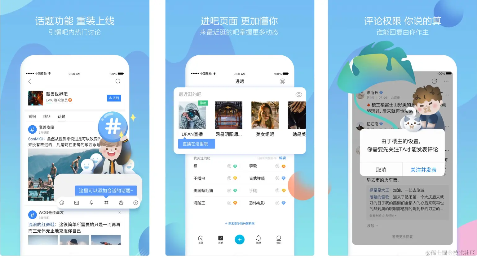 如下图是百度贴吧最新版本的引导图,在版本更新进入时,告知用户新功能更新内容。