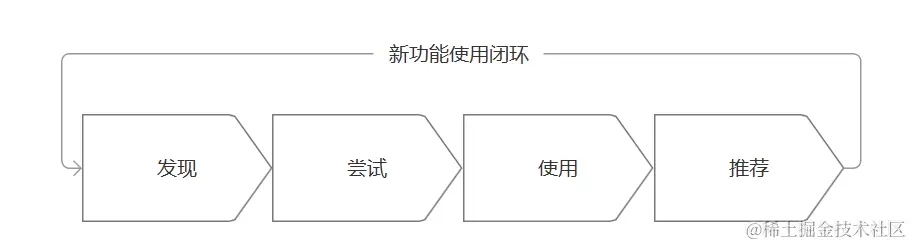 - 推荐阶段, 用户喜欢新功能后,激发用户的分享动机,完成推荐更多人发现尝试新功能的闭环。
