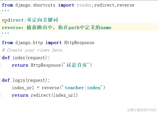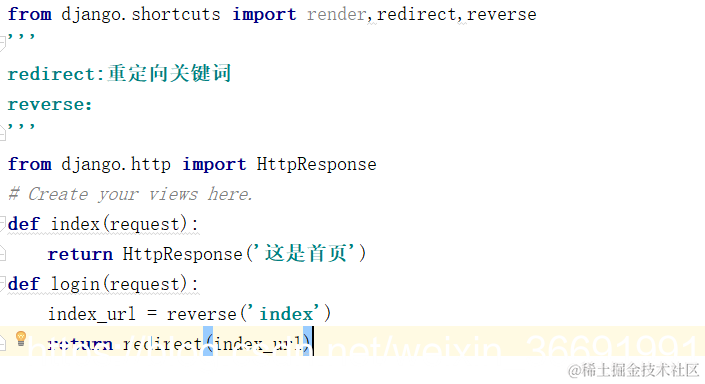 4.重定向(redirect,django框架重定向的关键字)这个在view.py中使用。看图