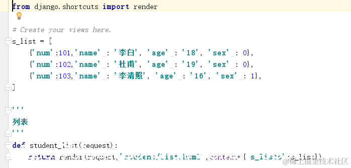 看到图中的render中的参数context,它是一个字典,Django中是用字典来传值的。然后再模板中来处理。