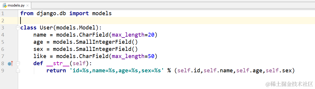 这里的__str__是在后面使用,这里想不提。熟悉mysql的同学们可以看出上面的name,age,sex后面的models的属性像不像myslq中的字段类型。没错,这就是myslq中的字段类型。