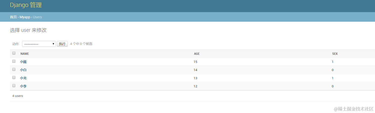 为了方便再后台更直观的看到数据,我们可以把表注册到app中的admin中。看下图: