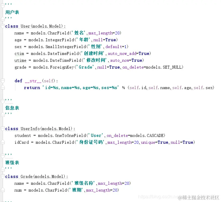 关联方式:在副表类中添加:models.OneToOneField('主表类',on_delete=models.CASADE)