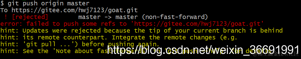 git错误--error: Merging is not possible because you have unmerged files. hint: Fix them up in the work AI搬运工 2022-11-01 122 阅读1分钟 这样的错误是本地的文件和未提交(commit)的文件有差异。所以,在这里先使用git status 然后 git add 差异文件。然后在git commit。但是,这里又会出现一个问题。 这个时候使用 git push -f origin master 然后切换分支到master。 建议在分支开发。