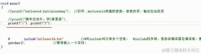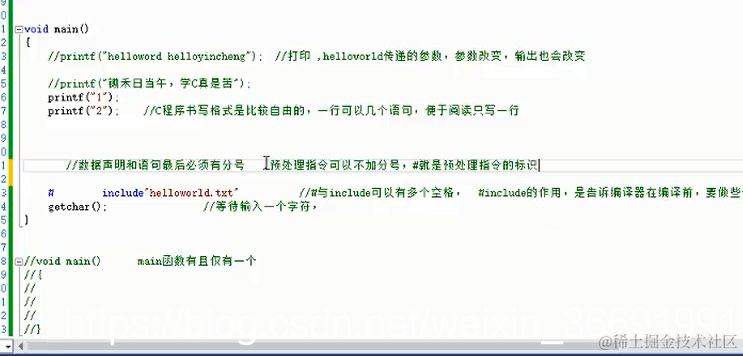 (getchar和printf两个函数的声明位于stdio.h文件中)