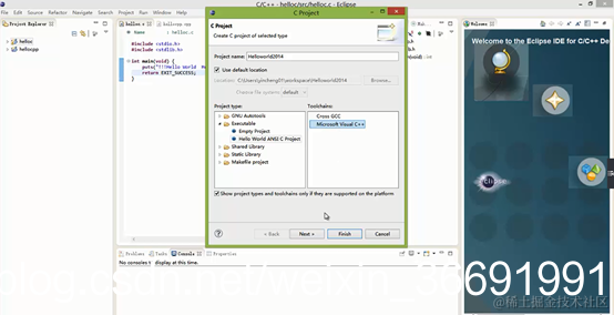 12.通过Eclipse for C/C++ 创建一个名为HelloWorld2014的项目