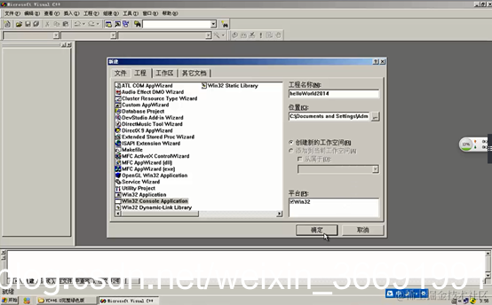 5.通过微软的VC++6.0集成开发环境 创建一个名为HelloWorld2014项目工程为Win32 Console Application