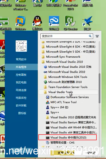 2.我们通过按Win键找到Microsoft Visual Studio 2010下的Visual Studio Tools .然后单击Visual Studio 命令提示( 2010 ).