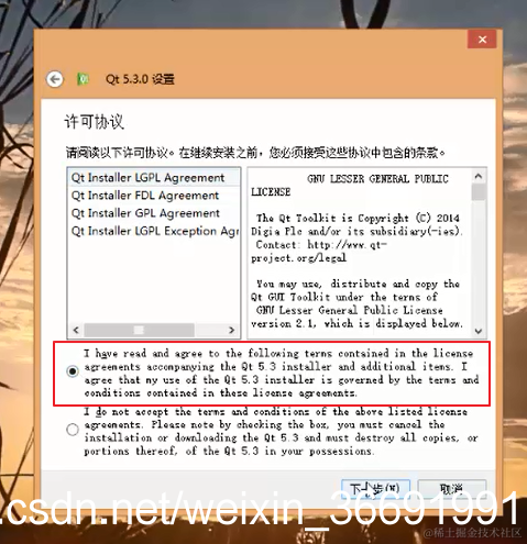 5.在许可协议这一项中我们选择第一个同意,然后单击下一步,再单击下一步