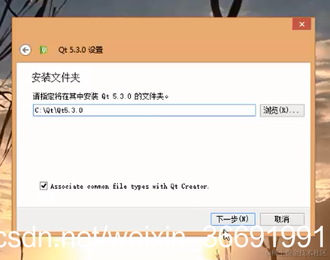 3.下面是软件安装位置的设置 ,在这里我们把它安装在了C盘下的Qt目录,然后单击下一步