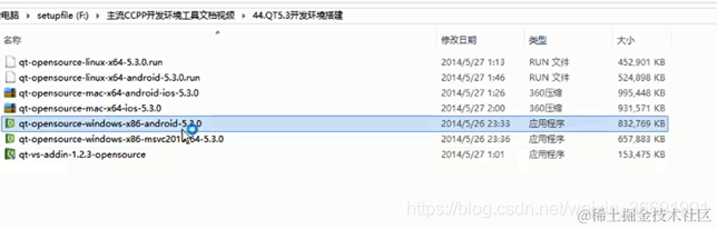因为QT是一个跨平台的集成开发环境,因此既能够安装在Windows下,还能够安装在Linux,Mac机下我们双击第5个安装包,在Windows下安装QT