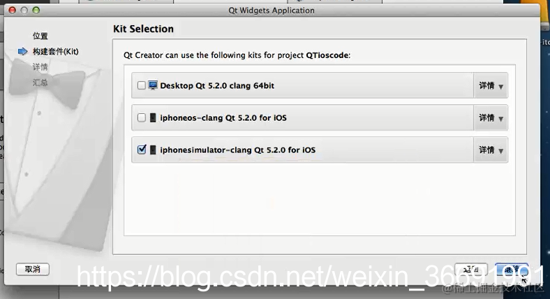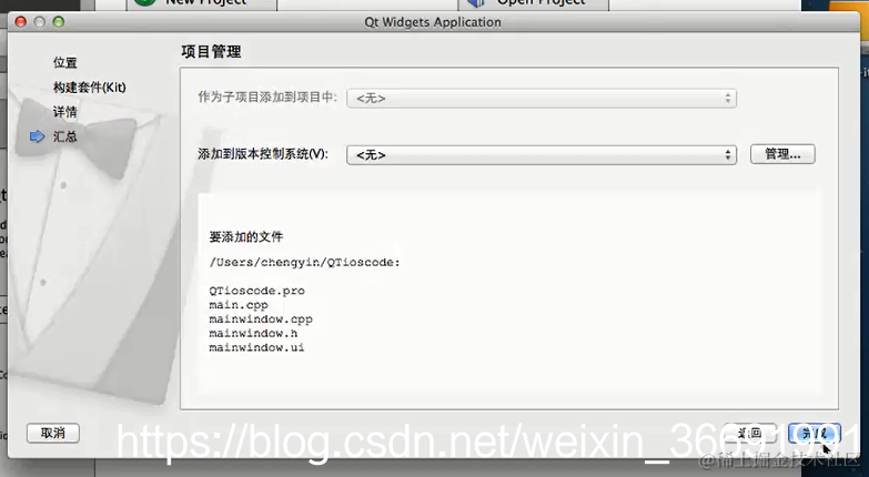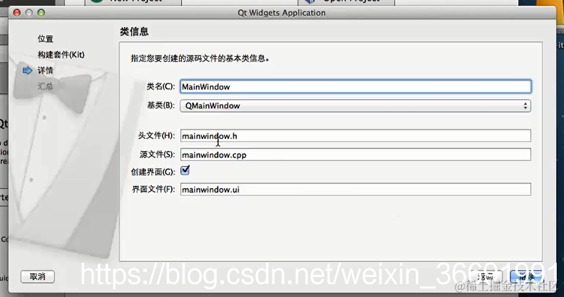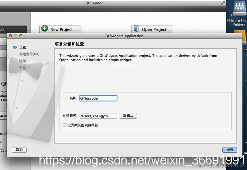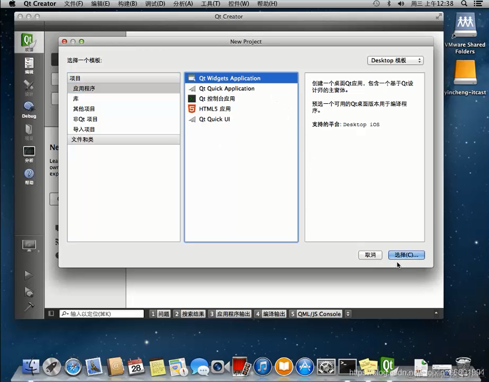 1、我们启动Mac机下的QT创建一个Qt Widgets Application项目