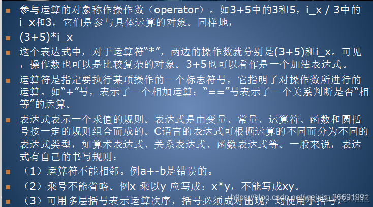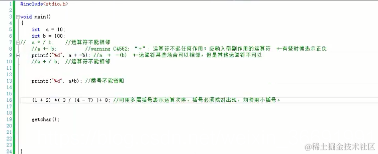 (1)运算符不能相邻。例a+-b是错误的。