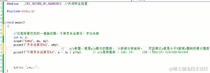 3、算数实现求余代码示例演示: