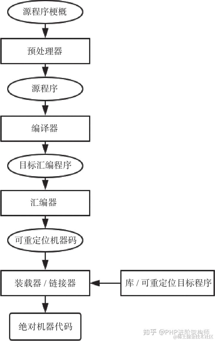 对于一段C语言代码,需要经过预编译、编译、汇编和链接,才能成为可执行的二进制文件。
