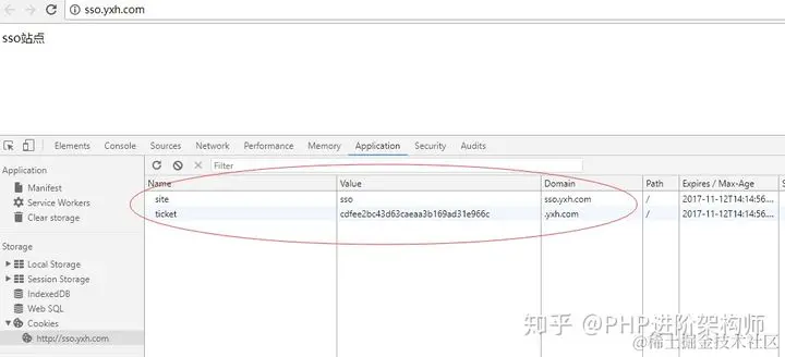 setcookie("site", "sso", time() + 1000);//sso.yxh.com自己可以看到