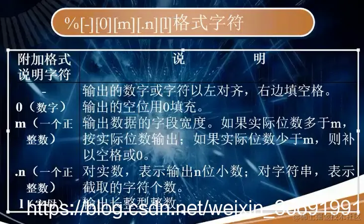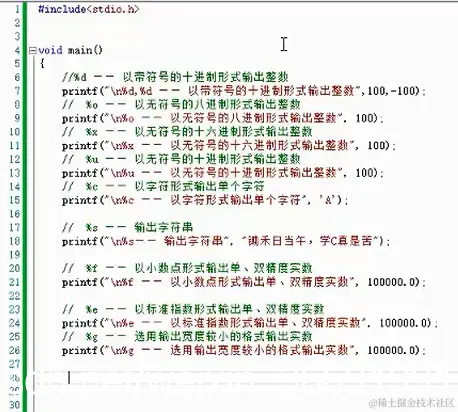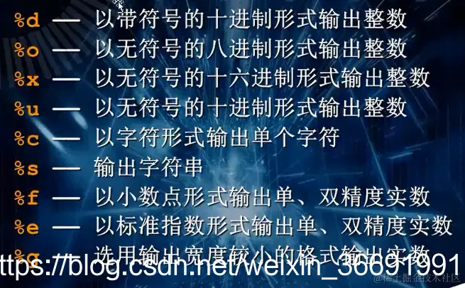 1)由“%”后跟格式字符组成。 将输出数据转换为指定格式输出。