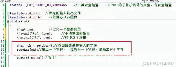 getchar(); //手动输入一个字符