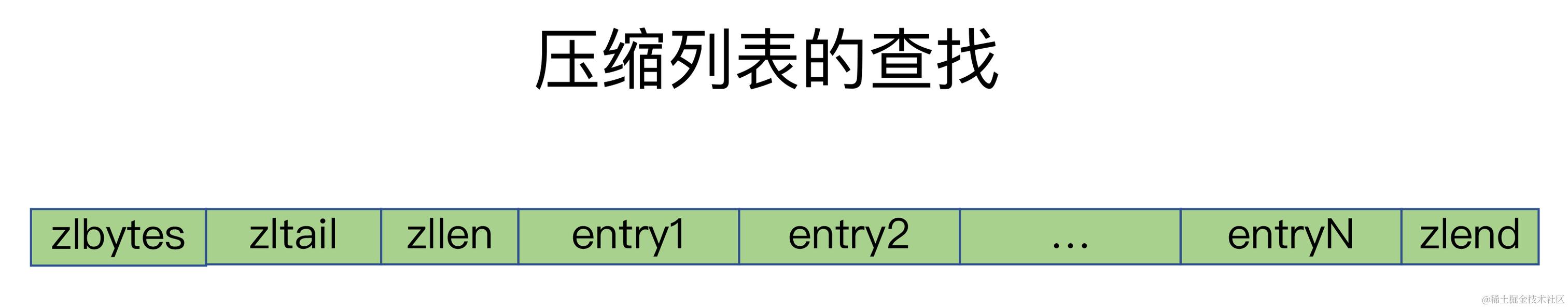压缩列表实际上类似于一个数组,数组中的每一个元素都对应保存一个数据。和数组不同的是,压缩列表在表头有三个字段zlbytes、zltail和zllen,分别表示列表长度、列表尾的偏移量和列表中的entry个数;压缩列表在表尾还有一个zlend,表示列表结束。