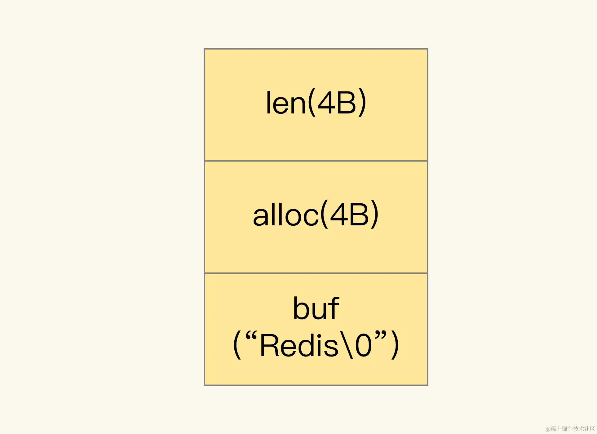 可以看到,在SDS中,buf保存实际数据,而len和alloc本身其实是SDS结构体的额外开销。