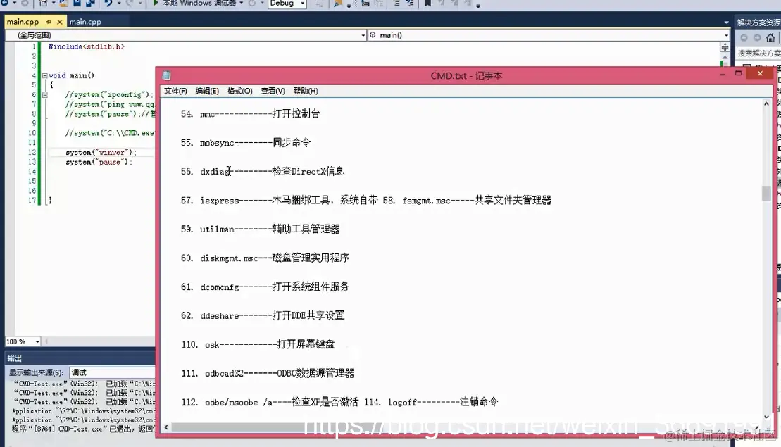 5、下面有很多的DOS命令通过system函数在程序中运行