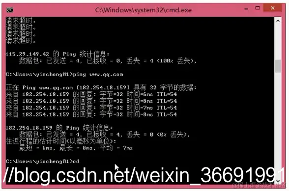 3、ping www.qq.com 是查看网络是否畅通