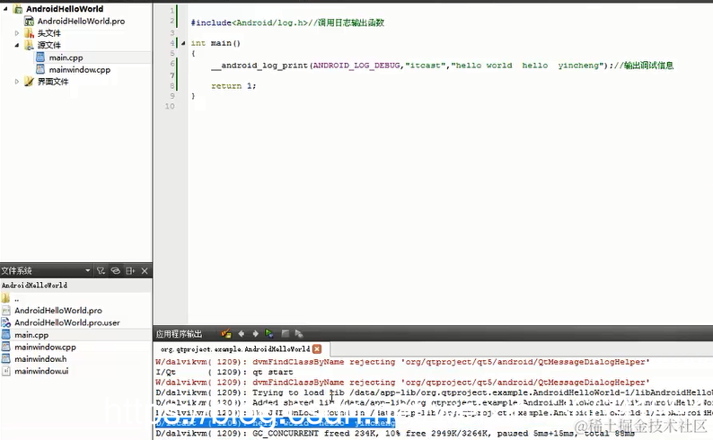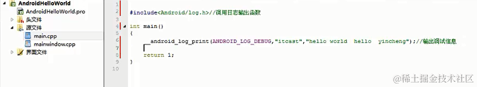 _android_log_print(ANDROID_LOG_DEBUG, "itcast","hello world hello yincheng "); //输出调试信息