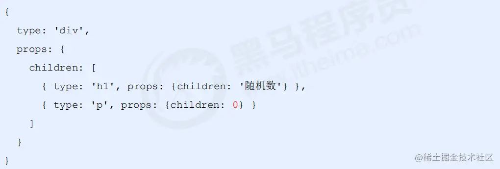虚拟 DOM(Virtual DOM)本质上是JS 和 DOM 之间的一个映射缓存,它在形态上表现为一个能够描述 DOM 结构及其属性信息的 JS 对象。虚拟 DOM 在 React 中的形态,如下图所示:
