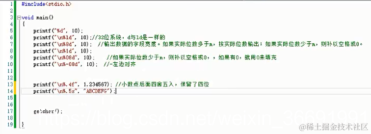 C/C++输入输出格式说明 AI搬运工 2022-11-01 95 阅读1分钟 %[-][0][m][.n][l] 格式字符 针对上面的说明我们进行如下的编码 32位系统,d与ld是一样的 运行结果如图所示: