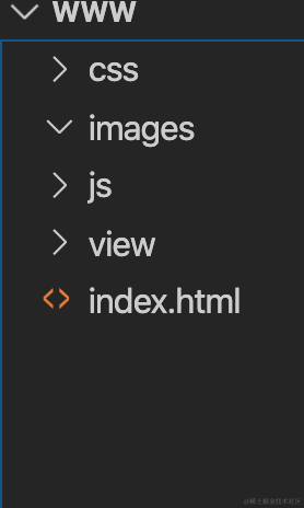 1.开发项目,我们先的搭建一个项目目录,基本的项目目录很简单,就一个index.html文件、css、js、images文件夹。