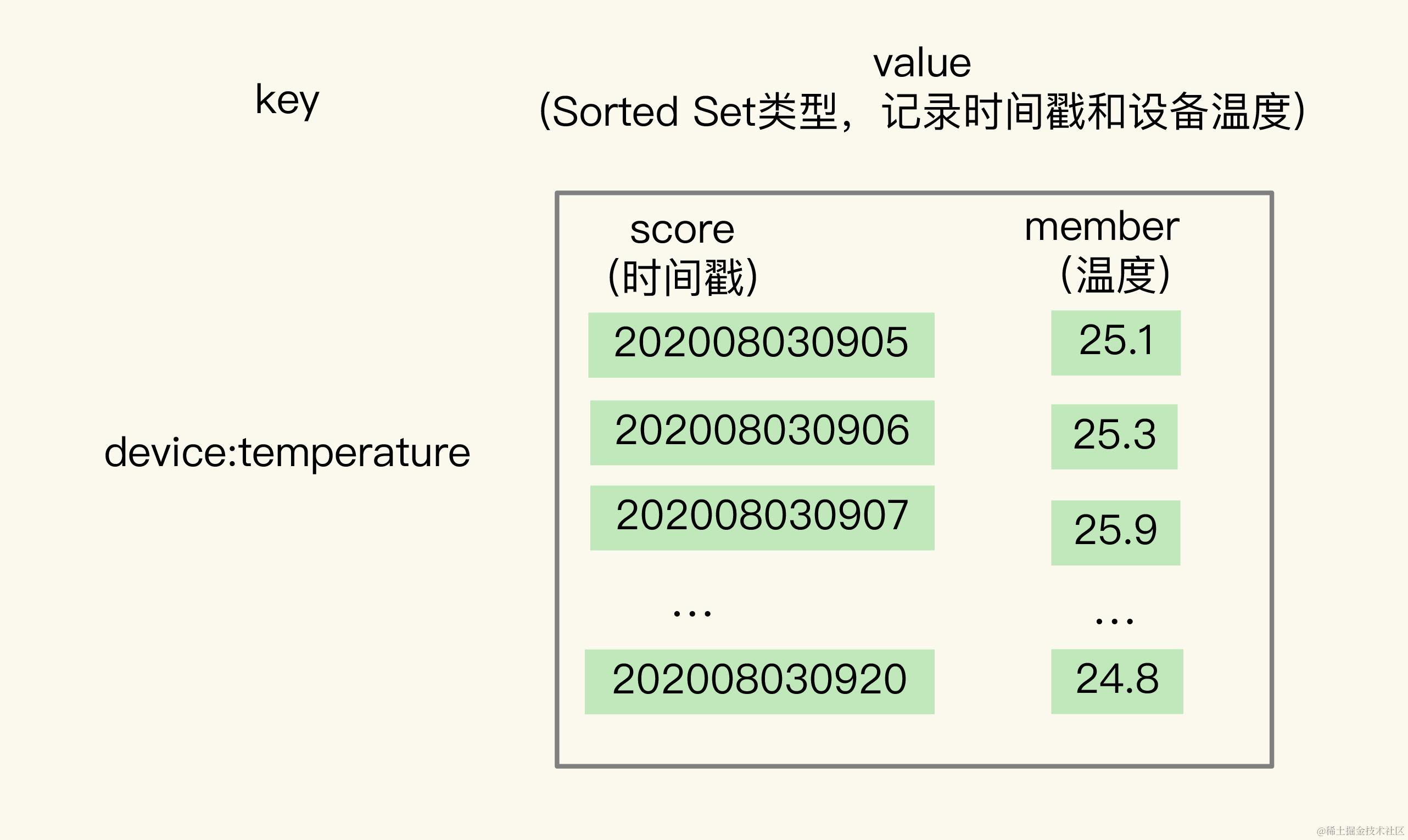 可以看下用Hash集合记录设备的温度值的示意图: