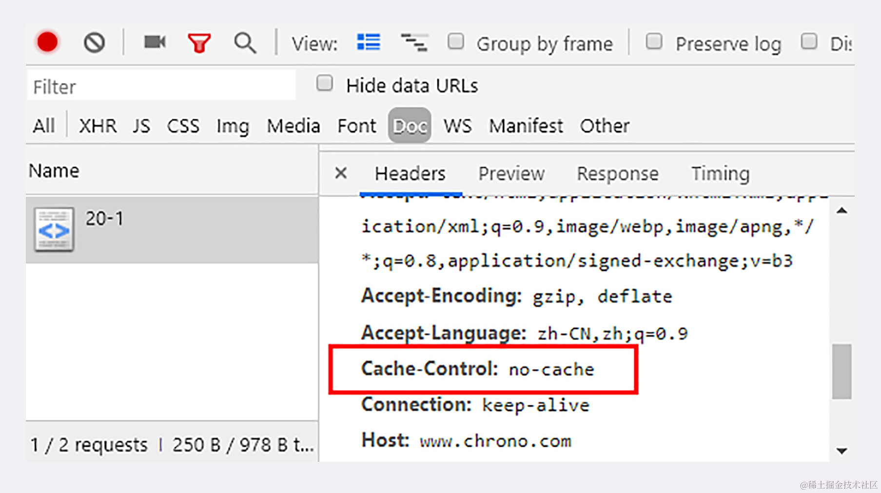 其实也很简单,在“前进”“后退”“跳转”这些重定向动作中浏览器不会“夹带私货”,只用最基本的请求头,没有“Cache-Control”,所以就会检查缓存,直接利用之前的资源,不再进行网络通信。